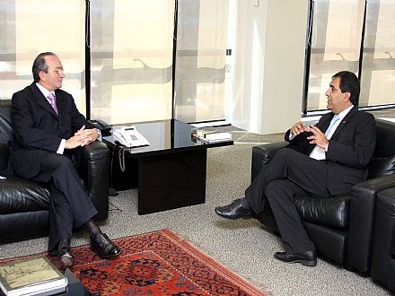 Brasília, 07/08/2008 - O presidente nacional da Ordem dos Advogados do Brasil (OAB), Cezar Britto, recebe neste momento, em seu gabinete, o presidente eleito do Superior Tribunal de Justiça (STJ), ministroCesar Asfor Rocha. O ministro solicitou a reunião para convidar Britto para a sessão solene de sua posse na Presidência da Corte, que será realizada no próximo dia 3 no Pleno do Tribunal. Décimo-terceiro presidente do STJ, Cesar Asfor Rocha também presidirá o Conselho da Justiça Federal (CJF), órgão encarregado da supervisão administrativa e orçamentária da Justiça Federal de primeira e segunda instâncias. O ministro foi eleito para o cargo na última terça-feira (05).