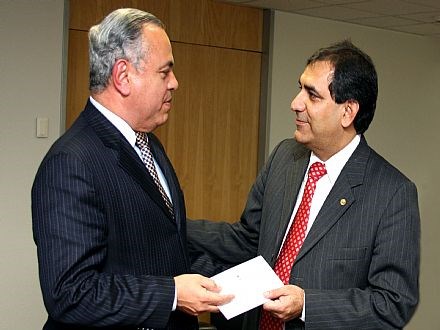 Brasília, 05/11/2008 - O presidente nacional da Ordem dos Advogados do Brasil, Cezar Britto, será agraciado com a Ordem do Mérito do Judiciário do Tribunal Regional do Trabalho (TRT-RJ) da 1ª Região, no grau Grande Oficial. A cerimônia de outorga da comenda será no dia 12 de dezembro, no Fórum Ministro Arnaldo Süssekind, edifício-sede do Tribunal, no Rio de Janeiro. Britto foi oficiado hoje sobre a concessão da condecoração pela presidente do TRT-RJ, desembargadora Doris Castro Neves. O documento foi entregue pessoalmente ao presidente nacional da OAB pelo desembargador e ex-presidente daquele Tribunal, Nelson Tomaz Braga.