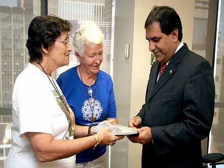 Brasília, 05/11/2008 - O presidente nacional da Ordem dos Advogados do Brasil (OAB), Cezar Britto, recebeu hoje (05) em seu gabinete as irmãs de Notre Dame Rebeca Spires e Julia Dwegg, que integram a mesma congregação da missionária Dorothy Stang, assassinada em Anapu, no Pará, em fevereiro de 2005. Na reunião, elas entregaram a Britto um dossiê contendo 17 crimes cometidos no Pará e ainda não julgados, estando, até hoje, sem solução. Constam do documento casos como o de João Canuto de Oliveira, morto em 1985 em Rio Maria (PA), com 18 tiros por dois pistoleiros. Ele era perseguido devido à forte atuação junto a posseiros paraenses. Cezar Britto aproveitou o encontro que teve hoje com o ministro da Justiça, Tarso Genro, para entregar-lhe cópia do dossiê e pedir providências por parte do governo.