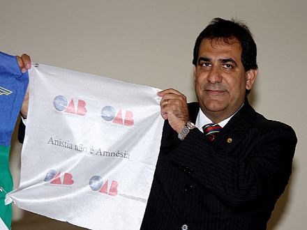 Natal (RN), 13/11/2008 - "Lembrar para não esquecer jamais". Esse foi o lema da sessão realizada hoje (13) pela Comissão de Anistia do Ministério da Justiça em parceria com o Conselho Federal da Ordem dos Advogados do Brasil (OAB) em homenagem a advogados que defenderam presos e perseguidos políticos durante o regime militar. A sessão foi realizada pela Caravana da Anistia e a OAB durante a XX Conferência dos Advogados, que acontece no Centro de Convenções de Natal (RN). O presidente nacional da OAB, Cezar Britto, rememorou a árdua atuação dos profissionais da advocacia que defenderam presos em uma época em que sequer se podia divulgar essa defesa, sob pena de serem enquadrados como apoiadores do comunismo.