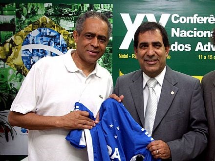 Natal (RN), 14/11/2008 - O presidente nacional da OAB, Cezar Britto, ganhou hoje (14) do presidente da Seccional de Minas Gerais da entidade, Raimundo Cândido Junior, uma camisa oficial do Cruzeiro de Belo Horizonte. Ao receber a camisa de número 10, Britto confidenciou que é torcedor do Cruzeiro em Minas, Vasco no Rio de Janeiro e do América de Própria (sua cidade natal em Sergipe). "Eu já era Cruzeiro antes. Agora, depois que o Atlético Mineiro venceu de quatro a um o meu Vasco, sou muito mais cruzeirense", disse Britto ao agradecer o presente.