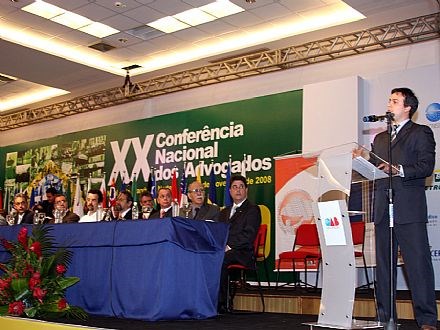 Natal (RN), 15/11/2008 - O neto do ex-presidente João Goulart - deposto em 1964, iniciando a ditadura militar e anistiado hoje (15) pelo governo federal durante a XX Conferência Nacional dos Advogados, em Natal -, Christopher Goulart, afirmou que o fato dessa anistia ter sido julgada e concedida dentro de uma Conferência da OAB e na presença de mais de 5 mil advogados e estudantes de Direito, tem grande representação simbólica. "Traz também um caráter muito justo a ser atribuído em decorrência de sua formação profissional, pois João Goulart era advogado e eu também sou", afirmou o neto de Jango, emocionado.