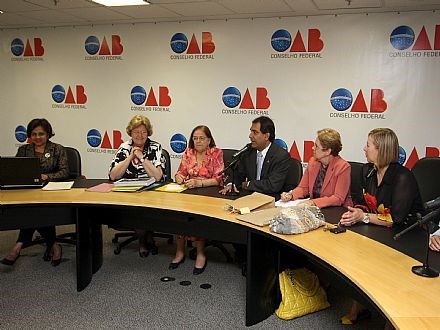 Brasília, 19/11/2008 - O presidente nacional da Ordem dos Advogados do Brasil (OAB), Cezar Britto, e a secretária geral da OAB, Cléa Carpi da Rocha, recepcionaram as participantes do Seminário Internacional "Cultura, Direito e as Questões de Gênero no Mercosul e na América Latina", que será aberto às 19h30 de hoje (19) no auditório da sede da OAB Nacional, em Brasília. O evento terá a condução da presidente da Associação Brasileira de Mulheres de Carreira Jurídica, Herilda Balduíno de Sousa, e do presidente do Parlamento do Mercosul, deputado Doutor Rosinha. O evento acontece até a próxima sexta-feira (21).