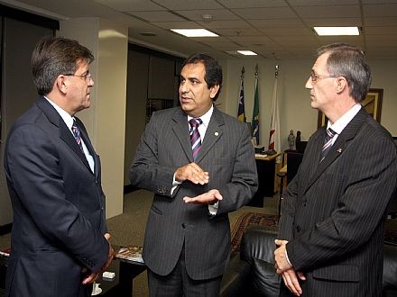 Brasília, 13/04/2009 - O presidente nacional da Ordem dos Advogados do Brasil, Cezar Britto, recebeu hoje (13) em audiência o presidente da Associação Nacional dos Advogados da Caixa Econômica Federal (Advocef), Davi Duarte, e o diretor de Articulação da entidade, Carlos Castro. Eles pediram ao presidente nacional da OAB que interceda em favor da categoria, reivindicando que a CEF cumpra um acordo firmado com os funcionários advogados no ano passado. O acordo deveria valer para o biênio 2008/2009 e previa melhoria das condições de trabalho e readequação da remuneração dos profissionais da advocacia da Caixa Econômica. Os dirigentes da Advocef solicitaram e o presidente Britto concordou em envidar esforços pelo cumprimento do acordo, a começar pelo agendamento de uma reunião com a presidente da CEF, Maria Fernanda, que será buscada nos próximos dias.