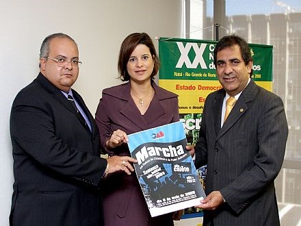 Brasília, 16/04/2008 - A presidente da Seccional da Ordem dos Advogados do Brasil no Distrito Federal (OAB-DF), Estefânia Viveiros, e o vice-presidente daquela entidade, Ibaneis Rocha, visitaram hoje (16) o presidente nacional da OAB, Cezar Britto, quando manifestaram total apoio à Marcha em Defesa da Cidadania e do Poder Judiciário, que será realizada no próximo dia 6, na Esplanada dos Ministérios. Organizado pela OAB e entidades da magistratura, o ato será um protesto contra o reiterado descumprimento de decisões judiciais que mandam pagar os precatórios e pela não-aprovação no Congresso Nacional da Proposta de Emendaà Constituição nº 12, a PEC do Calote dos Precatórios.