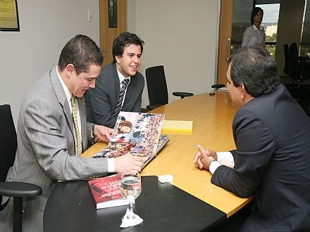 Brasília, 07/07/2009 - O presidente nacional da Ordem dos Advogados do Brasil (OAB), Cezar Britto, recebeu hoje (07), em seu gabinete, dois conselheiros da Comissão de Anistia, do Ministério da Justiça. Eles apresentaram a Britto o projeto inicial do "Memorial da Anistia", que será construído pelo Ministério no antigo prédio da Faculdade de Filosofia e Ciências Humanas da Universidade Federal de Minas Gerais (UFMG), com previsão de inauguração para janeiro de 2010. O museu terá como objetivo preservar e divulgar histórias da época da ditadura militar, com base em relatos e documentos históricos cedidos por perseguidos por militares.