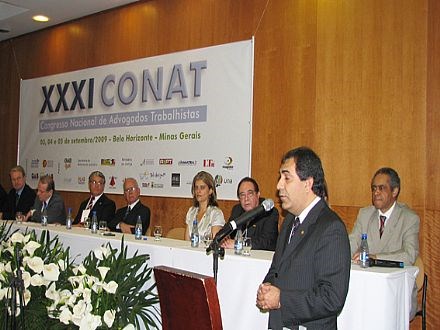 Brasília, 04/09/2009 - O presidente nacional da Ordem dos Advogados do Brasil (OAB), Cezar Britto, abriu, na noite desta quinta-feira, o XXXI Congresso Nacional de Advogados Trabalhistas (Conat), realizado em Belo Horizonte (MG). No evento, Britto classificou o advogado como "pensador do Direito trabalhista" e defendeu a idéia de que o trabalho é fator de crescimento do país. "O trabalho passou a ser compreendido, na Constituição, como fator de dignidade humana e não como empecilho ao crescimento do Estado, mas intrínseco e fundamental a esse crescimento, pois o Estado não cresce se a dignidade humana não for respeitada".