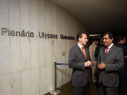 Brasília, 25/11/2009 - O presidente nacional da OAB, Cezar Britto e o conselheiro federal reeleito pelo estado do Pará, Ophir Cavalcante Junior, estiveram nesta terça-feira à noite no Plenário da Câmara dos Deputados aguardando a votação da PEC dos Precatórios mais conhecida no meio jurídico e parlamentar como PEC do Calote. Segundo Ophir, atual diretor do Conselho Federal da OAB,a Proposta de Emenda à Constituição 351, mais conhecida como PEC do Calote dos Precatórios, constitui um atentado contra o princípio da moralidade contido na Constituição Federal. Para ele, caso a PEC seja aprovada "o país entrará num ciclo vicioso em queo princípio da moralidade dará lugar ao princípioda imoralidade", e no qual o dito popular do "devo, não nego, pagarei quando puder" será alterado para "devo, não nego, não pagarei mesmo se puder".
