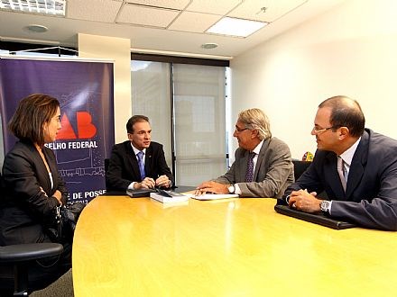 Brasília, 25/02/2010 - O presidente nacional da Ordem dos Advogados do Brasil (OAB), Ophir Cavalcante, recebeu na noite de hoje (25) o presidente do Centro de Estudos de Sociedades de Advogados (CESA), José Luis de Salles Freire, e de seu vice, Carlos Roberto Mateucci. No encontro, eles debateram formas de melhorar a interlocução entre as duas entidades, no sentido de fortalecer mais a advocacia a partir das sociedades de advogados. Freire também convidou Ophir para participar da próxima reunião do CESA, ainda a ser agendada. Também participou da reunião a representante da Seccional do CESA no Distrito Federal, Cristiane Romano.