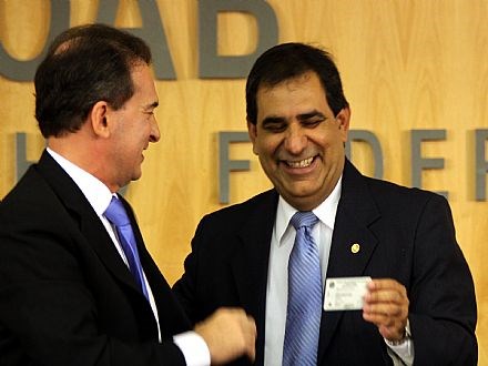 Brasília, 09/03/2010 - O presidente nacional da Ordem dos Advogados do Brasil, Ophir Cavalcante, fez hoje (09)a entrega solene ao ex-presidente da entidade Cezar Britto, seu antecessor imediato no cargo, da carteira de identidade de Membro Honorário Vitalício (MHV) do Conselho Federal da OAB. O ato aconteceu durante sessão do Pleno do Conselho Federal e contoucom a presença de toda a sua diretoria: além de Ophir, o vice-presidente nacional, Alberto de Paula Machado;o secretário-geral, Marcus Vinicius Furtado Coêlho; a secretária-geral adjunta, Márcia Machado Melaré, e o diretor tesoureiro, Miguel Cançado. Prestigiaram também a solenidadeos membros honorários vitalícios da entidade Mário Sérgio Duarte Garcia, Hermann Assis Baeta, Ophir Filgueiras Cavalcante, José Roberto Batochio e Roberto Busato, além dos conselheiros federais e de presidentes de Seccionais da OAB.
