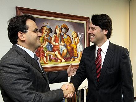 Brasília, 22/03/2010 - O presidente em exercício do Conselho Federal daOrdem dos Advogados do Brasil (OAB), Marcus Vinícius Furtado Coêlho, recebeu hoje (22) o presidente da Seccional da OAB do Distrito Federal, Francisco Caputo, em seu gabinete. Na reunião, eles debateram a instalação das 230 novas Varas Federais, criadas em agosto do ano passado pela Lei 12.011/09, e a Proposta de Emenda Constitucional (PEC) 544/02, que cria mais quatro Tribunais Regionais Federais (TRFs)para desafogar a demanda dos cinco hoje existentes no País. Tanto a OAB Nacional quanto a OAB-DF defendem que o critério de instalação das novas varas federais deva se dar com base em critérios técnicos, que identifiquem a necessidade da presença da Justiça Federal. A distribuição geográfica das novas varas será definida pelo Conselho de Justiça Federal em abril.