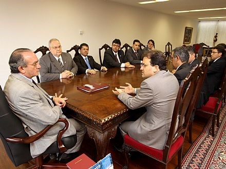 Brasília, 23/03/2010 - O presidente em exercício do Conselho Federal da Ordem dos Advogados do Brasil, Marcus Vinicius Furtado Coêlho, esete presidentes de Seccionais da entidade, receberam hoje (23) a garantia do presidente do Superior Tribunal de Justiça e do Conselho da Justiça Federal (CJF), ministro Cesar Asfor Rocha, de que a implantação e distribuição das novas Varas da Justiça Federal previstas pela Lei 12.011/2009 "seguirão critérios rigorosamente técnicos". Em entrevista após a audiência, no gabinete da Presidência do STJ, Marcus Vinicius afirmou que "a Ordem se sentiu bastante contemplada com essa definição do presidente Cesar Asfor Rocha, de que a implantação das 230 novas Varas federais seguirão critérios absolutamente técnicos, como é defendido também pela entidade dos advogados, de tal forma que a Justiça Federal esteja realmente onde a população e os processos se encontrem".