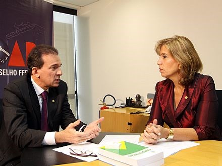 Brasília, 05/05/2010 - O presidente nacional da Ordem dos Advogados do Brasil, Ophir Cavalcante, recebeu hoje (05) a visita da deputada Nilmar Ruiz (DEM-TO), com quem discutiu projeto de lei complementar de sua autoria (nº 104/2007) que inclui os serviços advocatícios como beneficiário do Regime Especial Unificado de Arrecadação de Tributos e Contribuições, o chamado Supersimples. Durante a reunião, eles discutiram uma parceria pela rápida tramitação e aprovação da proposta e a possível convocação de audiência pública para debater a matéria entre todos os interessados.