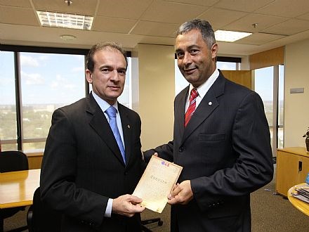 Brasília, 06/05/2010 - O presidente nacional da Ordem dos Advogados do Brasil, Ophir Cavalcante, recebeu hoje (06) convite do presidente da Seccional da OAB de Sergipe, Carlos Augusto Monteiro Nascimento, para participar da solenidade de 75 anos de criação da entidade, quando será inaugurado o Memorial da Advocacia. O evento acontece na próxima terça-feira (11), às 18h, no Palácio da Cidadania, sede da OAB-SE, ocasião em queserá também exibido documentário sobre a história da entidade e haverá lançamento de selo alusivo à data.