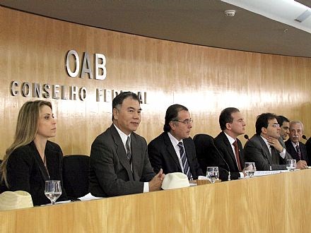 Brasília, 21/06/2010 - O Conselho Federal da Ordem dos Advogados do Brasil (OAB) recebeu hoje (21), em sua sessão plenária, a visita do embaixador Jorge Guang-pu Shyu, do Escritório Econômico e Cultural de Taipei no Brasil. O embaixador, que foi recebido pelo presidente nacional da OAB, Ophir Cavalcante e pelo presidente da Comissão de Relações Internacionais da entidade, Cezar Britto, veio conhecer a estrutura da OAB Nacional e aproveitou para participar da sessão plenária.