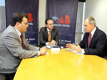 Brasília, 21/07/2010 - O presidente nacional da Ordem dos Advogados do Brasil (OAB), Ophir Cavalcante, recebeu hoje (21), em seu gabinete, o presidente da Associação Empresarial de Joinville, Carlos Rodolfo Schneider, que apresentou à OAB os objetivos do Movimento "Brasil Eficiente", que propõe a apresentação de um projeto de lei de iniciativa popular visando a realização de uma verdadeira reforma fiscal para o país. Iniciado na classe empresarial, o Movimento agora busca o apoio da OAB Nacional e de outras entidades representativas para que também a sociedade civil entenda como se dá o impacto fiscal e das despesas governamentais nas contas do país e de que forma esse cenário pode ser alterado. Também participou da reunião o secretário-geral do Conselho Federal da OAB, Marcus Vinícius Furtado Coêlho.