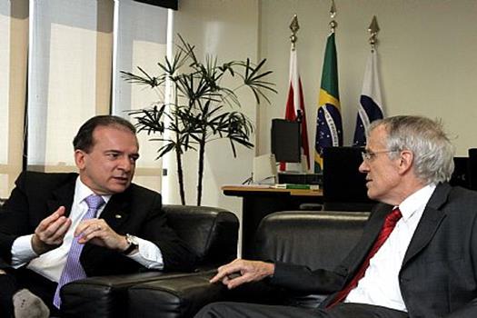 Brasília, 16/09/2010 - O presidente nacional da Ordem dos Advogados do Brasil, Ophir Cavalcante, recebeu hoje (16), em seu gabinete, o embaixador da Suíça no país, Wilhelm Meier. O embaixador convidou o presidente da OAB para participar de um seminário que sobre jornalismo investigativo em São Paulo, ao final de novembro, que debaterá a liberdade de imprensa e o relacionamento dos jornalistas com o Judiciário e o Governo. Do seminário, participarão advogados, promotores, juízes e jornalistas do Brasil, Índia, África do Sul e México, entre outros. No encontro, Ophir e Wilhelm Meier ainda conversaram sobre a situação política brasileira, a atuação da Polícia Federal e sobre as eleições que se avizinham no Brasil.