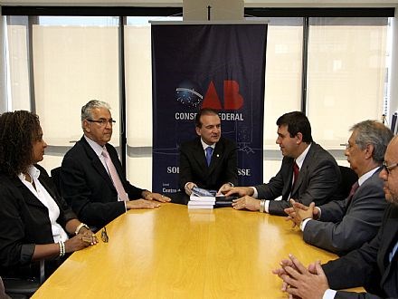 Brasília, 21/09/2010 - O presidente nacional da Ordem dos Advogados do Brasil (OAB), Ophir Cavalcante, recebeu hoje (21), em seu gabinete, o novo presidente da Associação Brasileira de Advogados Trabalhistas (Abrat), Jefferson Lemos Calaça. Ele entregou a Ophir o convite para a posse solene da nova diretoria da entidade (eleita para o biênio 2010-2012), que será realizada às 19h30 do dia 15 de outubro. Entre as bandeiras da nova gestão estão a identificação facilitada dos advogados nas entradas dos Fóruns e o debate atuante de temas como o recesso forense e os honorários advocatícios.