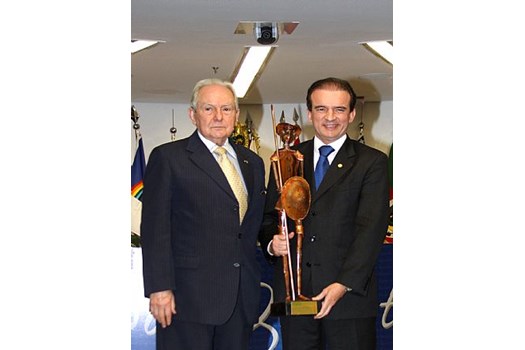 Brasília, 03/11/2010 - O presidente nacional da Ordem dos Advogados do Brasil (OAB), Ophir Cavalcante, foi agraciado, na noite dessa quarta-feira, com o troféu Dom Quixote de La Mancha, outorgado pelo Conselho Editorial da Revista Justiça & Cidadania a personalidades que se destacaram na advocacia, magistratura, Ministério Público e administração pública e privada na defesa da ética e da dignidade da Justiça e dos direitos da cidadania. O prêmio foi entregue a Ophir pelo ex-presidente nacional da entidade, Bernardo Cabral. A solenidade de agraciamento aconteceu na sala de sessões da Segunda Turma do Supremo Tribunal Federal. Pela OAB, acompanharam a homenagem a Ophir o secretário-geral adjunto da entidade, Marcus Vinícius Furtado Coêlho, e o diretor-tesoureiro da OAB, Miguel Cançado.