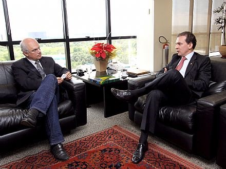 Brasília, 09/12/2010 - O presidente nacional da Ordem dos Advogados do Brasil (OAB), Ophir Cavalcante, recebeu hoje (09), em audiência, o presidente da Federação Nacional dos Jornalistas (Fenaj), Celso Augusto Schröder. Na audiência, solicitada por Schröder, o presidente da Fenaj apresentou suas justificativas em defesa da criação do Conselho Nacional de Jornalismo e da elaboração de um marco regulatório para a profissão. O presidente nacional da OAB afirmou que o compromisso da Ordem é com a manutenção da total liberdade de expressão e de imprensa no país.