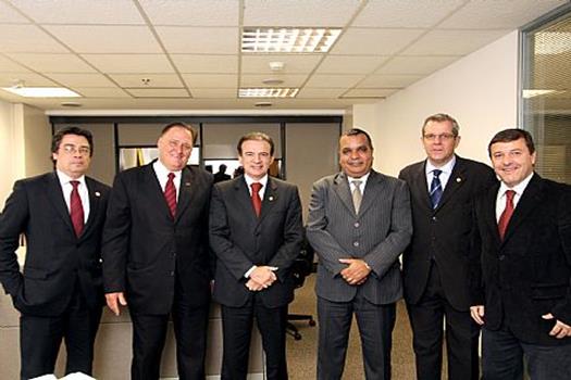Brasília, 14/06/2011 - O presidente nacional da Ordem dos Advogados do Brasil, Ophir Cavalcante, recebeu hoje (14) os membros da Comissão Especial de Eventos Desportivos do Conselho Federal da OAB, após reunião ordinária do órgão de assessoramento, na sede da entidade. Na ocasião, eles formalizaram a Ophir o convite para presidir a abertura e participar como atleta do XII Campeonato Brasileiro de Futebol de Advogados. O evento está programado para a cidade do Rio de Janeiro, de 07 a 11 de setembro próximo. Participaram do encontro os membros da Comissão Hélio Vieira da Costa (presidente), José Geraldo Alves de Souza (vice-presidente), Aldo Francisco Zago, Eugênio Duarte Vasques, Lúcio Aparecido Sousa e Silva, Rui Teles Calandrini Filho e o convidado Ricardo Menezes.