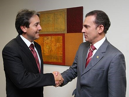 Brasília, 14/10/2011 - O presidente nacional da Ordem dos Advogados do Brasil, Ophir Cavalcante, recebeu hoje (14) a visita de cortesia do advogado Dorival Borges de Souza Neto, nomeado pela presidente Dilma Roussef para ocupar o cargo de juiz do Tribunal Regional do Trabalho da 10ª Região, dentro do sistema do Quinto Constitucional da advocacia. Dorival foi um dos integrantes da lista sêxtupla de advogados indicados ao cargo pelo Conselho Federal da OAB. Ophir cumprimentou Dorival Borges pela nomeação, augurando sucesso em sua missão no TRT-10.