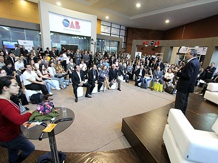 Curitiba (PR), 21/11/2011 - O jornalista e escritor Laurentino Gomes, autor das obras 1808 e 1822, inaugurou Programa Bate Papo Cultural, momento descontraído em que grandes nomes da Literatura estarão reunidos com os advogados inscritos na XXI Conferência Nacional dos Advogados, que acontece no Centro de Convenções ExpoUnimed, em Curitiba. Ao iniciar o bate papo, Laurentino descreveu a honra que sente de conversar com os advogados e estudantes de Direito 33 anos depois da Conferência histórica da OAB de 1978, realizada também em Curitiba quando o Brasil enfrentou os anos de chumbo da ditadura militar.