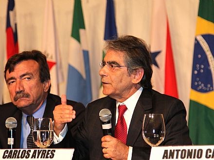 Curitiba (PR), 22/11/2011 - O vice-presidente do Supremo Tribunal Federal (STF), Carlos Ayres Britto, ressaltou a importância da imprensa como ferramenta de fiscalização de todas as instâncias de poder. "Não é possível que o Estado faça uma intervenção neste meio. A imprensa e a democracia estão intimamente ligadas. Se cortarmos o cordão umbilical que as prende, ambas morrem", sustentou. Britto participou do painel Direito de Liberdade na XXI Conferência Nacional dos Advogados, realizada no Centro de Convenções ExpoUnimed, em Curitiba, ao lado do advogado-geral da União, Luis Inácio Adans; da vice-presidente do Instituto Brasileiro de Direito de Família, Maria Berenice Dias; e do advogado Antonio Carlos Rodrigues do Amaral, membro da Comissão de Direito Tributário do Conselho Federal da OAB.