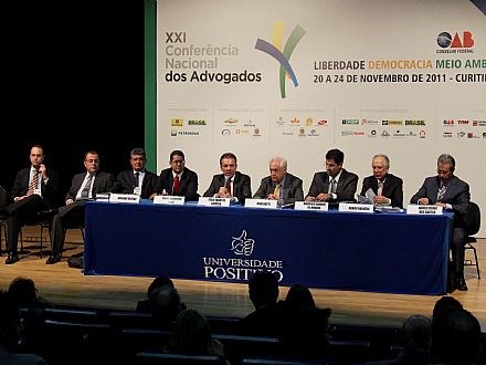 Curitiba (PR), 22/11/2011 - O presidente nacional da Ordem dos Advogados do Brasil (OAB), Ophir Cavalcante, e o vice-presidente da entidade, Alberto de Paula Machado, acompanharam hoje (22) parte do painel sobre "A Reforma do Código de Processo Penal", um dos eventos especiais realizados durante a XXI Conferência Nacional dos Advogados pelo Conselho Federal da OAB. O painel teve como coordenador o renomado jurista René Ariel Dotti, que conduziu debates sobre as novas medidas cautelares pessoais e reais, o princípio da presunção de inocência na jurisprudência do Supremo Tribunal Federal e alterações no procedimento do Tribunal do Júri.