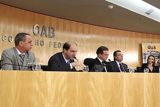 Brasília, 06/03/2012 - O Pleno do Conselho Federal da Ordem dos Advogados do Brasil (OAB) decidiu, por unanimidade, rejeitar apoio ao projeto de lei do Senado número 606/11, que acrescenta à Consolidação das Leis do Trabalho (CLT) novas disposições para o cumprimento de sentenças e execução de títulos extrajudiciais no âmbito da Justiça do Trabalho. A decisão foi tomada com base no voto do relator da matéria na OAB, o conselheiro federal pelo Mato Grosso, Francisco Anis Faiad. A sessão foi conduzida pelo presidente nacional da OAB, Ophir Cavalcante.