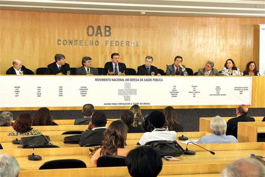 Na solenidade, o presidente da OAB lembrou que 68% dos brasileiros dependem da saúde pública e que, atualmente, a União não é obrigada por lei a destinar qualquer percentual fixo de sua receita para o Sistema Único de Saúde, assim como são Estados e municípios (que têm de repassar 12% e 15%, respectivamente, de suas receitas). Por essa razão a OAB, segundo Ophir, decidiu se engajar nessa campanha para, em parceria com os profissionais da saúde, levantar 1,5 milhão de assinaturas e apresentar ao Congresso o projeto de lei de iniciativa popular, a exemplo do que fez quando do projeto que gerou a Lei Complementar 135/10 – conhecida como Lei da Ficha Limpa.
