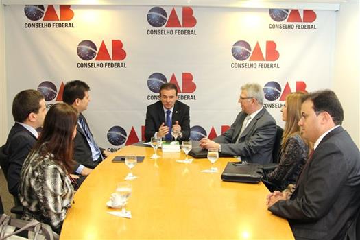Brasília – O presidente nacional da Ordem dos Advogados do Brasil, Ophir Cavalcante, recebeu hoje (14) convite para a posse do presidente eleito da Associação Nacional dos Procuradores de Estado (Anape), Marcello Terto e Silva. A solenidade de posse acontecerá na próxima quinta-feira (21), às 19h30, no auditório do Conselho Federal da OAB. A nova diretoria da Anape, que sucederá a conduzida atualmente por Juliano Dossena, foi eleita para o biênio 2012/2014. Da audiência em que foi entregue o convite, participaram também o secretário-geral do Conselho Federal da OAB, Marcus Vinicius Furtado Coêlho; o 1º vice-presidente eleito da Anape, Telmo Lemos Filho, além de novos diretores daquela entidade.