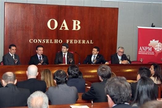 Brasília - A Ordem dos Advogados do Brasil (OAB) apoia a luta encampada pela Associação Nacional dos Procuradores Municipais (ANPM) para constitucionalizar a figura do procurador municipal, por ser esta função essencial à Justiça, devendo a seleção dos procuradores municipais se dar pela via do concurso público. Afirmações neste sentido foram feitas pelo presidente nacional da OAB, Ophir Cavalcante, ao participar, na noite desta terça-feira (03), da solenidade de posse da nova diretoria da ANPM, eleita para o biênio 2012/2014. Na solenidade, que foi realizada no Centro Cultural Evandro Lins e Silva, da OAB, foi empossado presidente o procurador municipal de Fortaleza (CE), Guilherme de Rodrigues.