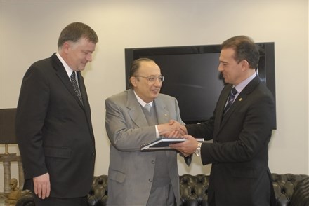 São Paulo – O diretor da Escola Superior da Advocacia de São Paulo (ESA-SP), Rubens Approbato Machado, que também é membro honorário vitalício do Conselho Federal da Ordem dos Advogados do Brasil, entregou hoje (10) ao presidente nacional da entidade, Ophir Cavalcante, o primeiro exemplar do livro que conta a história daquela instituição ligada à Seccional da OAB de São Paulo. Ao agradecer o exemplar número 001 do livro sobre a ESA paulista, como o denominou Approbato, Ophir Cavalcante disse que “a obra é um forte símbolo da unidade de desígnios que une a OAB em prol da educação continuada do advogado”.
