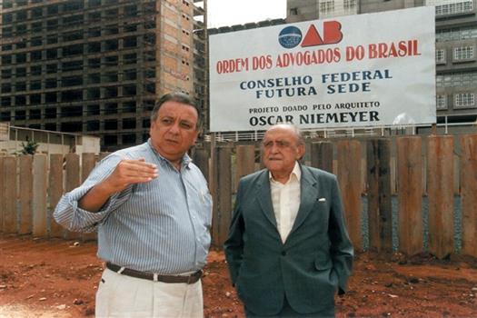 Reginaldo de Castro - Marcamos uma visita ao grande arquiteto brasileiro Oscar Niemeyer porque queríamos muito que a sede da OAB seguisse o exemplo deixado por todas as obras de Niemeyer na capital da República. Fomos ao Rio e ele nos recebeu com a gentileza de sempre em seu apartamento na Avenida Atlântica, em Copacabana, do alto de seus mais de 90 anos. Ele fumava a sua cigarrilha com enorme prazer e nos recebeu com diálogo extremamente agradável, interessante e inteligente. Eu disse a ele que gostaria muito que a Ordem dos Advogados do Brasil tivesse uma sede projetada por ele. No entanto, fui claro ao afirmar que essa sede deveria obedecer ao seguinte princípio: deveria ficar na linha entre o que separa a grande criatividade do arquiteto Niemeyer e a capacidade econômica e financeira da Ordem para realizar o projeto. Ele riu muito e disse que faria o projeto com atenção voltada para esse critério. Para ele, era fundamental o que eu acabara de dizer, pois disse que nada o irritava mais do que criar um projeto e depois ver que este não fora executado em sua plenitude em razão de falta de condições financeiras.
