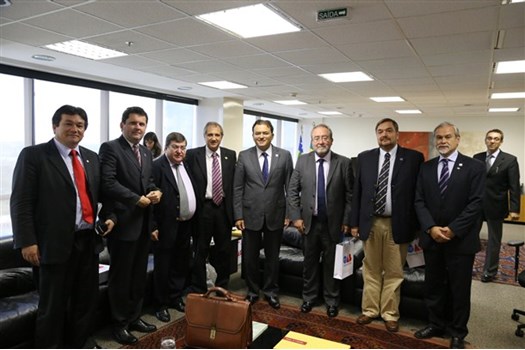 Brasília – O presidente nacional da Ordem dos Advogados do Brasil (OAB), Marcus Vinicius Furtado, recebeu nesta terça-feira (12) a visita dos presidentes do Colégio de Advogados do Uruguai, Bernardino Pablo Real, da Federação Argentina de Colégios de Advogados (FACA), Ricardo de Felipe, e do Conselho de Colégios e Ordens de Advogados do Mercosul (Coadem), Carlos Alberto Andreucci. Os dirigentes das delegações estrangeiras parabenizaram Marcus Vinicius pela solenidade de posse, que será realizada na noite de hoje no Centro de Convenções Ulysses Guimarães, e ratificaram o desejo de prosseguirem trabalhando juntos em prol do fortalecimento da advocacia em seus países.