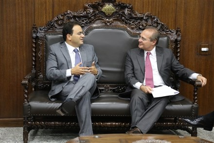 Brasília – O presidente nacional da Ordem dos Advogados do Brasil, Marcus Vinicius Furtado, se reuniu na noite desta terça-feira (21) com o presidente do Congresso e do Senado Federal, Renan Calheiros (PMDB-AL), a quem solicitou a imediata promulgação da Proposta de Emenda Constitucional (PEC) 544, aprovada pela Câmara em segundo turno desde o dia 3 de abril, criando quatro novos Tribunais Regionais Federais (TRFs) – nos estados do Paraná, Minas Gerais, Bahia e Amazonas – com o desmembramento dos cinco já existentes. Na audiência, ele solicitou também o apoio do senador Renan ao projeto de lei 105/2011, que trata da extensão do sistema tributário do Simples para a advocacia brasileira.