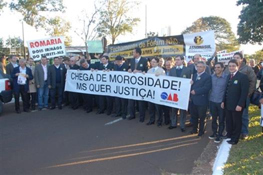 Campo Grande - Uma manifestação contra a morosidade do Judiciário estadual reuniu ao menos 700 pessoas em Campo Grande (MS), na última quinta-feira, organizado pela Seccional do Mato Grosso do Sul da Ordem dos Advogados do Brasil (OAB-MS). O ato reuniu advogados, servidores públicos, prefeitos, estudantes e representantes de ao menos 25 entidades. Outras bandeiras eram a demora para solucionar crimes de pistolagem, o combate à corrupção e ao tráfico de influência, a luta contra a impunidade e a transparência nas contas públicas. As informações são do portal G1.