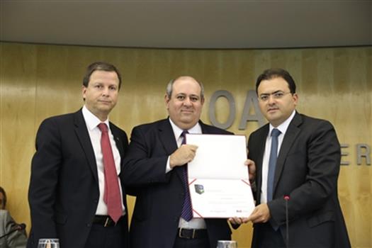 O representante da emissora de TV, Luiz Claudio Costa, agradeceu a homenagem da OAB e disse ser uma honra ser parceira do órgão em uma campanha tão importante. “É uma honra ser homenageado pela OAB, casa que defende as liberdades essenciais da sociedade brasileira”, discursou Costa.
