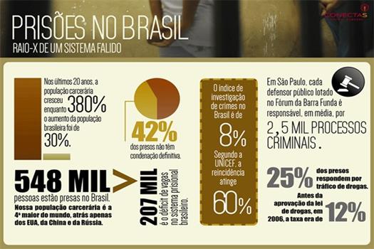 De acordo com a ONG Conectas Direitos Humanos, a população carcerária no país cresceu 380% nos últimos 20 anos. Ao todo são 548 mil presos, 207 mil a mais do que o número de vagas no sistema. Para o presidente da OAB, Marcus Vincius, o problema do sistema carcerário brasileiro só será resolvido quando o verdadeiro estado democrático deixar de ser apenas uma previsão constitucional e passar a garantir o cumprimento dos princípios para todos os brasileiros, principalmente em relação à dignidade humana.