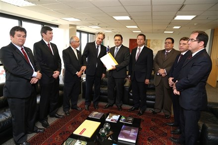 Marcus Vinicius recebeu os ministros na companhia do vice-presidente do Conselho Federal da Ordem, Claudio Lamachia; do secretário-geral adjunto Cláudio Stábile Ribeiro; do diretor-tesoureiro Antonio Oneildo Ferreira; do presidente da Comissão Especial de Direito da Tecnologia e Informação da OAB, Luiz Cláudio Allemand; do presidente da OAB-PI, Willian Guimarães; e do presidente do Fundo de Integração e Desenvolvimento Assistencial dos Advogados (FIDA), Felipe Sarmento.