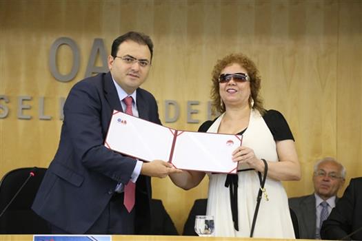 Brasília – A advogada Deborah Maria Prates Barbosa foi homenageada na sessão do Conselho Federal da OAB, nesta segunda-feira (10). Cega, a profissional obteve junto ao Supremo Tribunal Federal o direito ao peticionamento físico enquanto o Processo Judicial Eletrônico (PJe) não estiver totalmente adaptado às pessoas com deficiência. Deborah recebeu uma placa de elogio do CFOAB, produzida em braile, além de ser convidada a integrar as comissões de tecnologia e de inclusão da OAB.