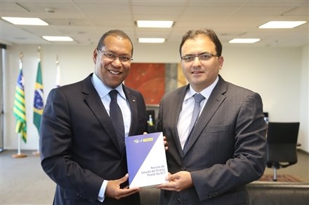 Brasília – Na tarde desta quinta-feira (13), o presidente do Conselho Federal da OAB, Marcus Vinicius Furtado Coêlho, recebeu a visita do vice-presidente Jurídico da Empresa Brasileira de Correios e Telégrafos (ECT), Cleucio Santos Nunes. Na ocasião, o dirigente da estatal presenteou Marcus Vinicius com um exemplar da Revista de Estudo e Direito Postal da ECT.