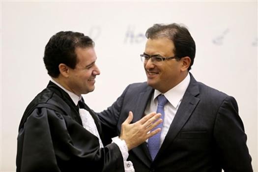 Ao lado de Marcus Vinicius, na mesa de posse, estavam o presidente do STJ, ministro Felix Fischer; o presidente do Senado Federal, Renan Calheiros; o vice-presidente do Supremo Tribunal Federal (STF), ministro Ricardo Lewandowski; e a vice-procuradora Geral da República, Ela Wiecko Volkmer de Castilho.
