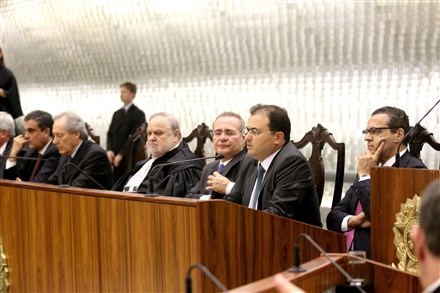 Brasília - O presidente nacional da Ordem dos Advogados do Brasil (OAB), Marcus Vinicius Furtado Coêlho, participou nesta segunda-feira (07), da sessão solene em comemoração aos 25 anos do Superior Tribunal de Justiça (STJ), instalado oficialmente no dia 7 de abril de 1989. O presidente do STJ, ministro Felix Fisher, presidiu a solenidade.