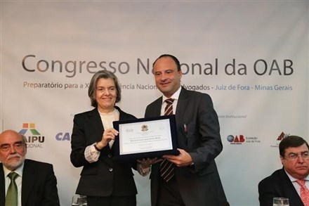 Antes de iniciar seu discurso, Carmen Lúcia recebeu das mãos de SIlva Chaves, em nome do presidente da OAB Nacional, Marcus Vinicius Furtado Coêlho, uma placa em homenagem aos exemplares trabalhos jurídicos prestados ao país. Em suas palavras, a ministra abordou o tema Democracia e Cidadania. “Todas as mães do mundo querem que seus filhos sejam os melhores do mundo. E aqui em Juiz de Fora, conheci algumas das mais emblemáticas dessas mães, e que tiveram sucesso neste desejo. Pois aqui nasceram Itamar Franco e Paulo Medina”, iniciou, fazendo referência a dois cidadãos do município.