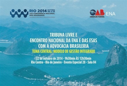 Rio de Janeiro (RJ) – Durante a XXII Conferência Nacional dos Advogados, de 20 a 23 de outubro de 2014 no Rio de Janeiro, acontecerá a Tribuna Livre e Encontro Nacional das Escolas de Advocacia da OAB com a Advocacia Brasileira. A atividade será realizada a partir das 9h30 do dia 22 de outubro, com o tema central “Modelo de Gestão Integrado”.