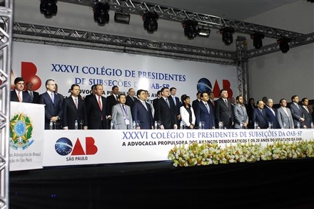 O tema do XXXVI Colégio de Presidentes das Seccionais Paulistas é “A Advocacia Propulsora dos Avanços Democráticos e os 20 Anos do Estatuto da OAB”. A solenidade de abertura contou também com a presença do governador do Estado de São Paulo, Geraldo Alckmin.