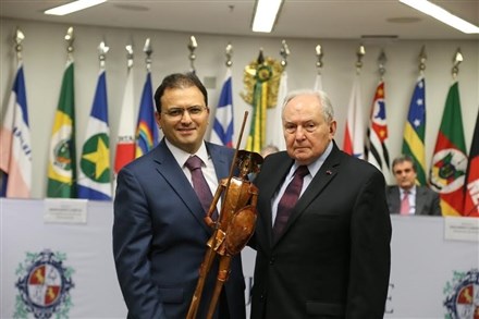 O presidente da OAB retribuiu o gesto do membro honorário vitalício entregando a ele o primeiro exemplar do livro “Estudos do Direito Constitucional – Homenagem a Bernardo Cabral”, que traça panorama da atuação do jurista, que foi relator da Constituição de 1988.