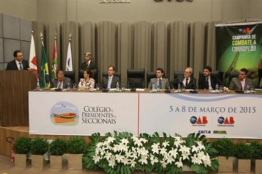 Tullo Cavallazzi Filho, presidente da OAB-SC e anfitrião do Colégio, destacou o papel exercido pela OAB. “Vivemos agora mais um momento delicadíssimo no país. Uma crise política, causada por denúncias gravíssimas de atos de corrupção e subtração do dinheiro público. Denúncias de crimes perpetrados contra a sociedade, que exigem de nós, dirigentes de OAB, uma posição firme. O povo brasileiro exige uma profunda apuração dos casos de corrupção, punição rigorosa aos culpados e uma postura transparente das autoridades. Liderar essa luta é dever que se impõe à OAB. Não será a primeira vez, e não nos furtaremos”, prometeu Tullo.